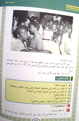 لم يجد المشرفون على أحد كتب مقررات التربية الإسلامية فيما يبدو صورة أنسب لدرس الجنايات غير صورة للرئيس الموريتاني الأسبق المختار ولد داداه "لتجسيد معاني الدرس".