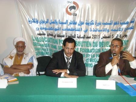 نظمت جمعية دعم التنمية "ASD" ورشة تحسيسية حول السيدا والسل الرئوي و الملاريا وكذا حقوق المرأة والطفل يومي 4- 5 بفندق حليمة، لصالح أئمة و أساتذة ثانويين من مقاطعات نواكشوط التسع ومقاطعات ترارزة الست.