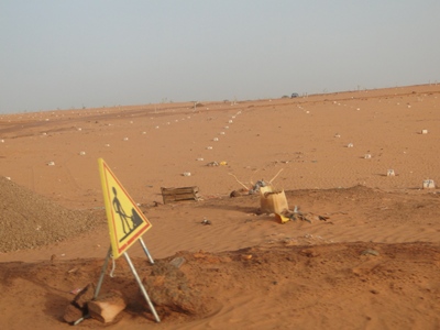 أعمدة قصيرة تحدد القطع الأرضية الممنوحة لمنكوبي الطينطان بديلا عن الخسائر التي تركتها الكارثة قبل ثلاثة أعوام (الأخبار)