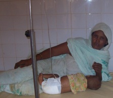 على أحد أسرة حجز الأطفال وسط المستشفي يسمع أنين الطفلة ديمي بنت محمد لكحل التي أصيبت ـ حسب والديها ـ بورم في خدها وهي حين ذلك في إحدى بوادي مقاطعة العيون فبادر ذووها بحملها إلي المستشفي لكنها لا تزال مصابة بالورم ذاته ووالدتها فاطمة غير مطمئنة إلي ما يقدمه الأطباء من الدواء والنصائح لإبنتها الوحيدة التي لا يتجاوز عمرها بضع شهور".