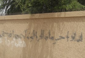 بالخط الأحمر تشهد هذه "الجدارية" على مستوى التنابز بين أطراف الأزمة التي عاشتها موريتانيا بعد انقلاب السادس من أغسطس (الأخبار)