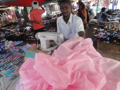 عند رواج السوق يستفيد جميع التجار والخياط علي رأسهم لوجوده تحت رغبات المواطنين في خياطة الثياب (تصوير الأخبار)