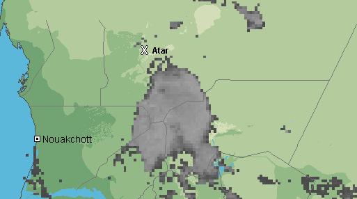 تظهر آخر صور الاقمار الاصطناعية انقشاع السحب على الحوضين وكذلك على حوض النهر، حيث تتركز السحب الآن على جنوب غرب وشمال غرب تكانت وعلى كامل منطقة التقاطع بين الولايات تكانت، لبراكنة، اترارزة وآدرار وتتحرك نحو الشمال الغربي ويتوقع أن تصل مدينة آدرار قبل الخامسة عصر اليوم بإذن الله تعالى.