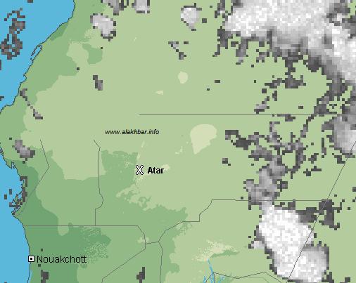 تظهر آخر صور الاقمار الاصطناعية الملتقطة حتى تمام الساعة الثامنة من صباح اليوم 16 أغسطس 2010 أن سحبا كثيفة قد عمت منذ الساعة السادسة من صباح اليوم كامل ولايتي ترارزة ونواكشوط وكذلك جنوب إينشيري، جنوب داخلة نواذيبو وغرب آدرار ومن المتوقع أن تؤدي هذه السحب إلى تهاطلات مطرية غزيرة فى بعض الأحيان، وخاصة شمال غرب نواكشوط داخل المحيط الأطلسي.