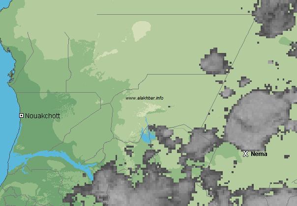 تظهر آخر صور الاقمار الاصطناعية الملتقطة حتى تمام الساعة العاشرة من صباح اليوم التاسع سبتمبر الجاري، تظهر أن السحب على الحوض الشرقي، خاصة شمال النعمة، وكذلك على شمال الحوض الغربي ازدادت كثافة خلال الساعة الأخيرة، فيما تتجه السحب على غيدى ماغة وجنوب لعصابة الآن نحو الشمال الغربي ويتوقع أن تعم كامل الحوض الغربي، لعصابة، غورغل وأن تصل جنوب تكانت وجل لبراكنة وأن تؤدي إلى تهاطل الامطار على أغلب المنطقة بإذن الله تعالى.