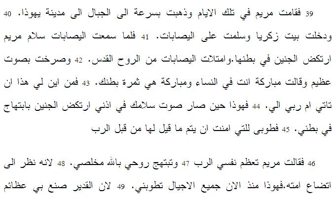 وضمن النصوص التي حصلت عليها "الأخبار" من ترجمة "البان" قصة زيارة مريم (عليها السلام) إلى المرأة العابدة "أَلِيصَابَات" والمولود الذي سترزقه الأخيرة في كبرها حسب الرواية الإنجيلية، إضافة إلى بشارة زكريا من بين قصص دينية أخرى، ويبدو من خلال المقارنة أن النص الحساني مترجم عن الإصحاحات الأولى من إنجيل "لوقا".