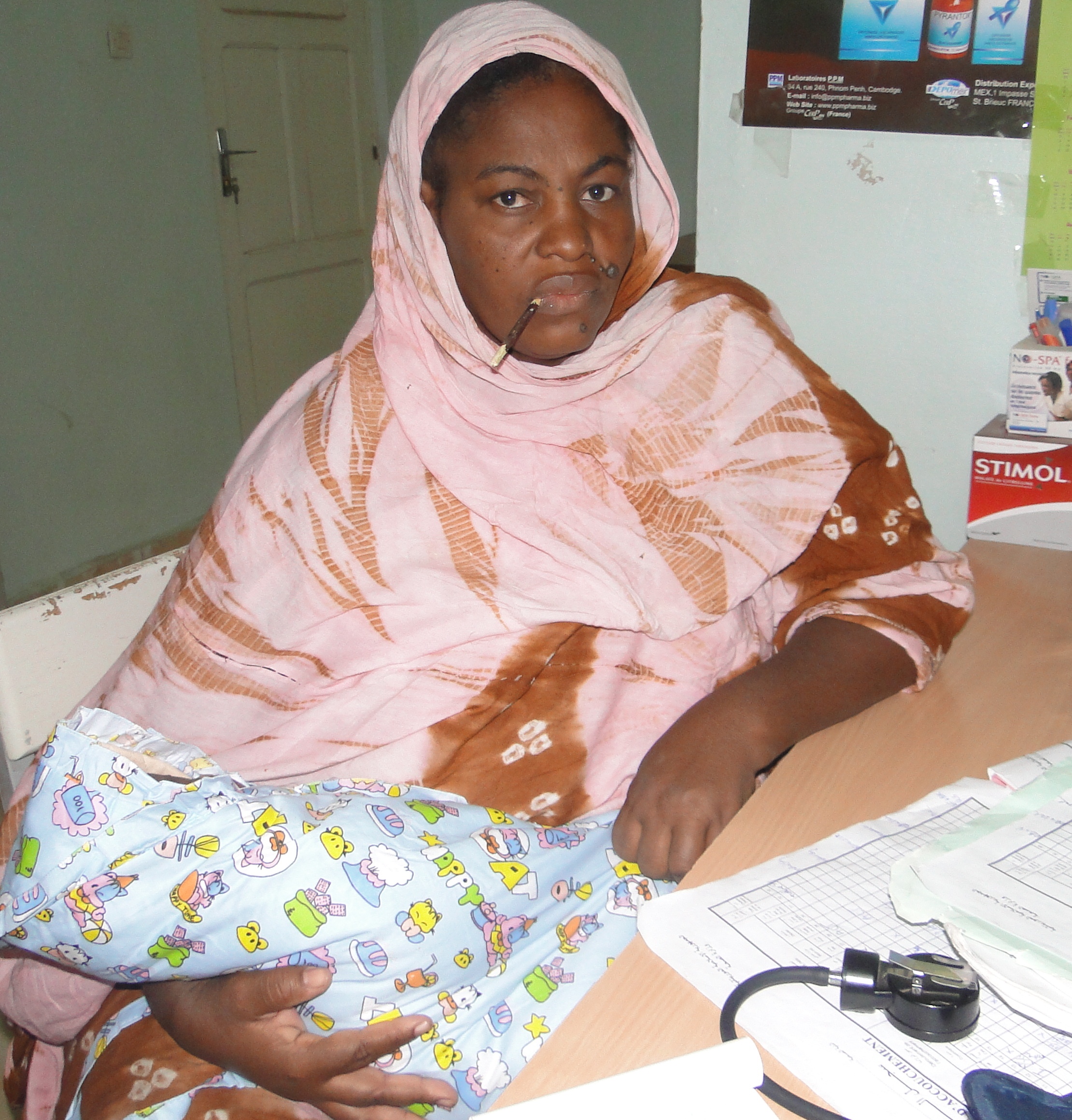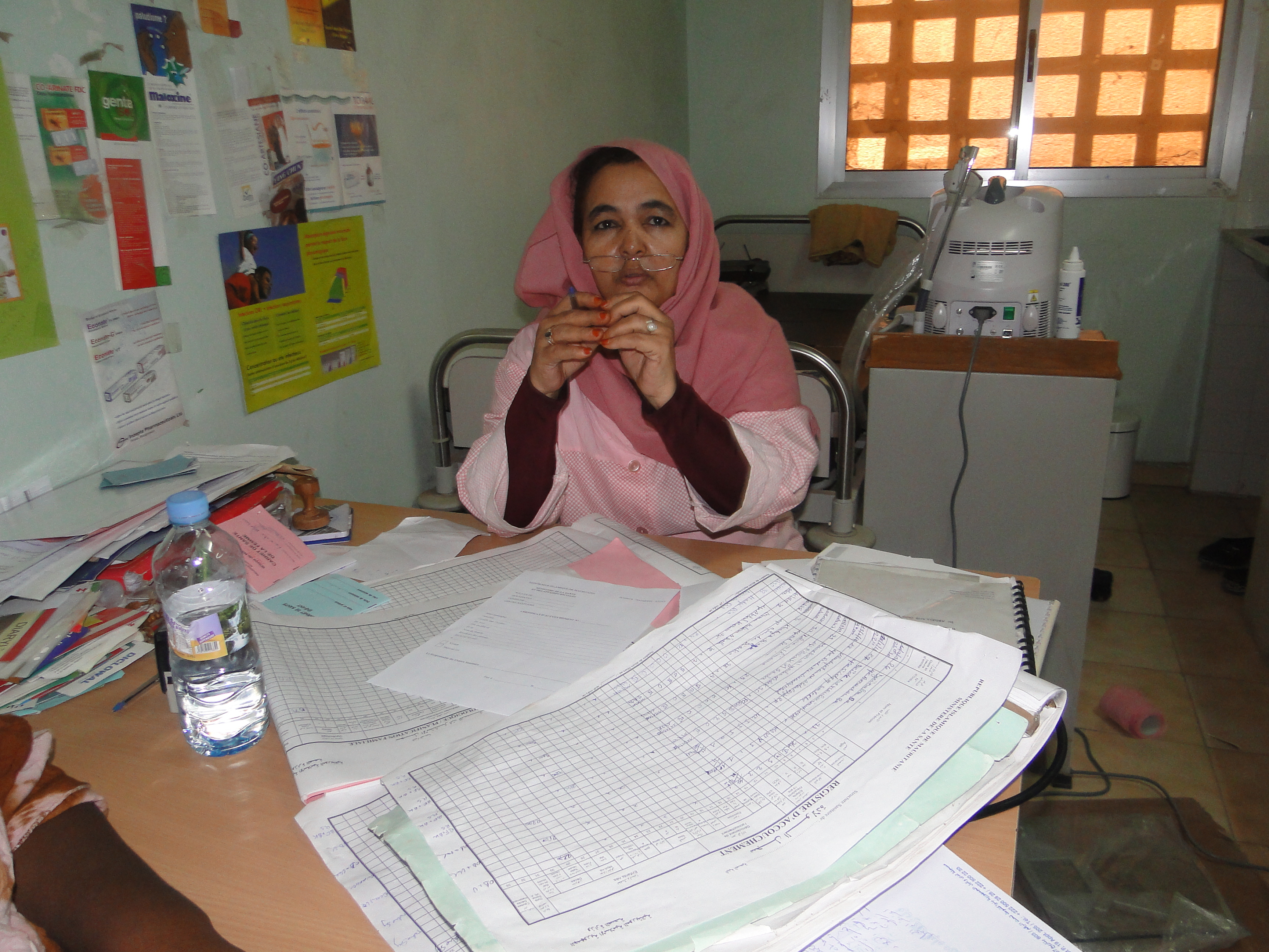 وفي الركن الآخر من المستوصف لا يختلف الحال كثيرا عند القابلة العزة بنت المحجوب التي تقلب سجلاتها هذه المرة بحثا عن اسم احدي النساء اللواتي تم تسجيلهن خلال الأسبوع المنصرم لدي ولادتهن داخل المستوصف.