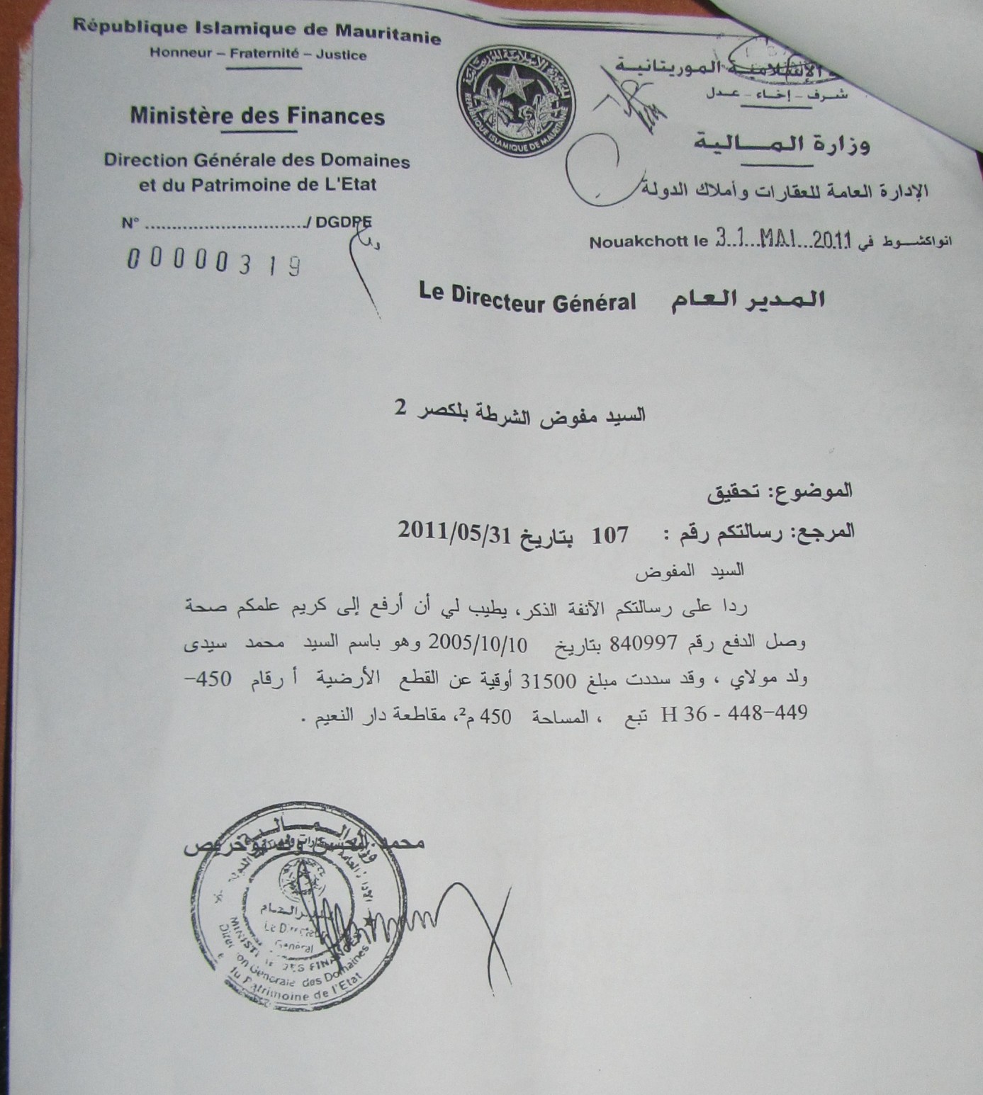 بعد الإطلاع على ما نشر موقعكم بتاريخ: 17/07/2011 حول قضية نزاع عقاري أقحمني فيه السيد المصطفى ولد عبد العزيز ولد أحمد المكي نائب ولاية اينشيري.