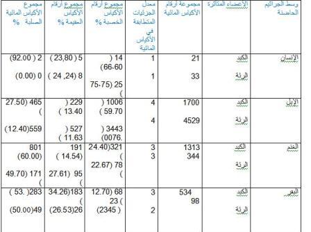 وعن الأجواء المساعدة علي انتشار المرض كانت نتائجنا تتفق مع التقرير السابق فمعدل الأكياس المائية حسبما أورد الكاتب الأول هو 54% في الإبل و 0.85% في البقر و الضأن 2.1 % و الماعز 2.4% .
