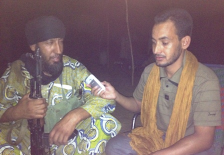 موفد الأخبار إلى أزواد أحمد ولد الندى وهو يحاور القيادى بالتوحيد والجهاد حماده ولد محمد خيرو (الأخبار)