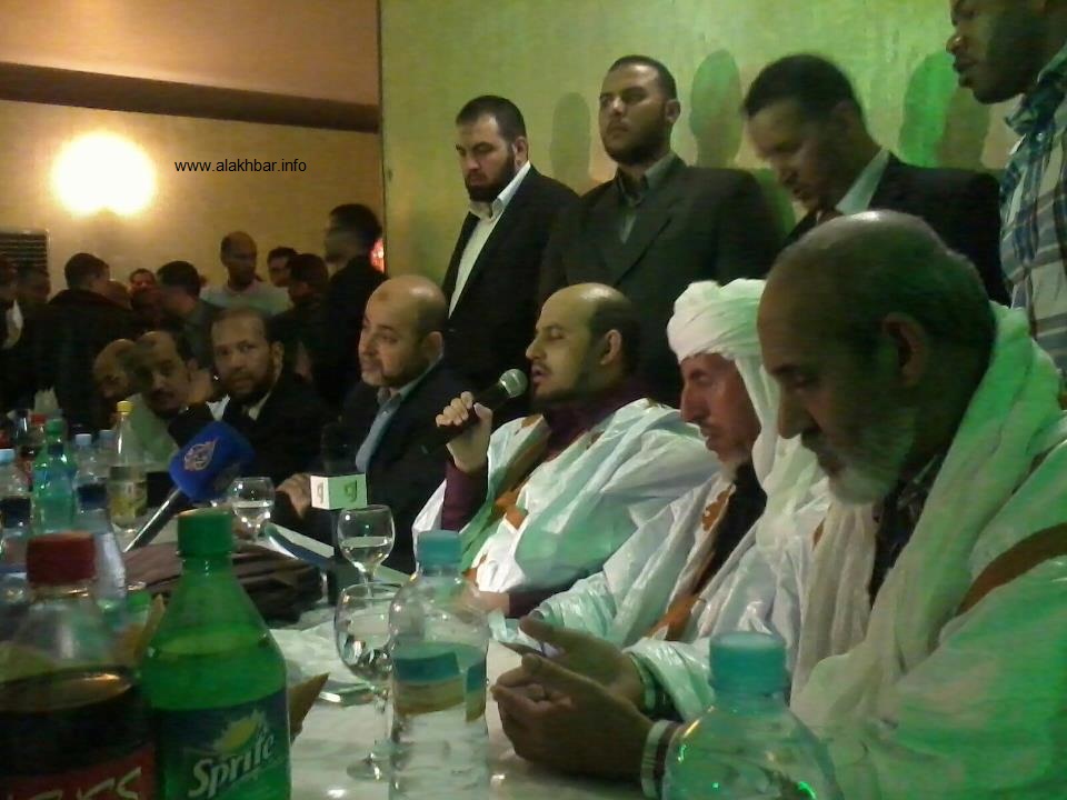 الشيخ علي الرضي رحب بالضيف الكريم وبرئيس الرباط الوطني للدفاع عن فلسطين محمد غلام ولد الحاج الشيخ وبأعضاء حزب تواصل المشاركين في الحفل.