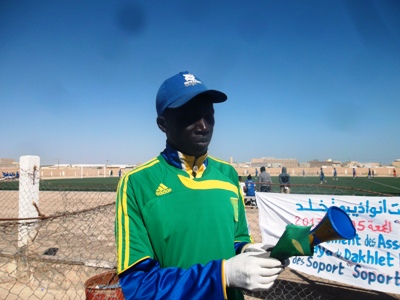 المشجع الأبرز فى مدينة نواذيبو جوب استغرب غياب السلطات الإدارية والمنتخبين المحليين عن أبرز حدث رياضى فى موريتانيا (تصوير الاخبار)