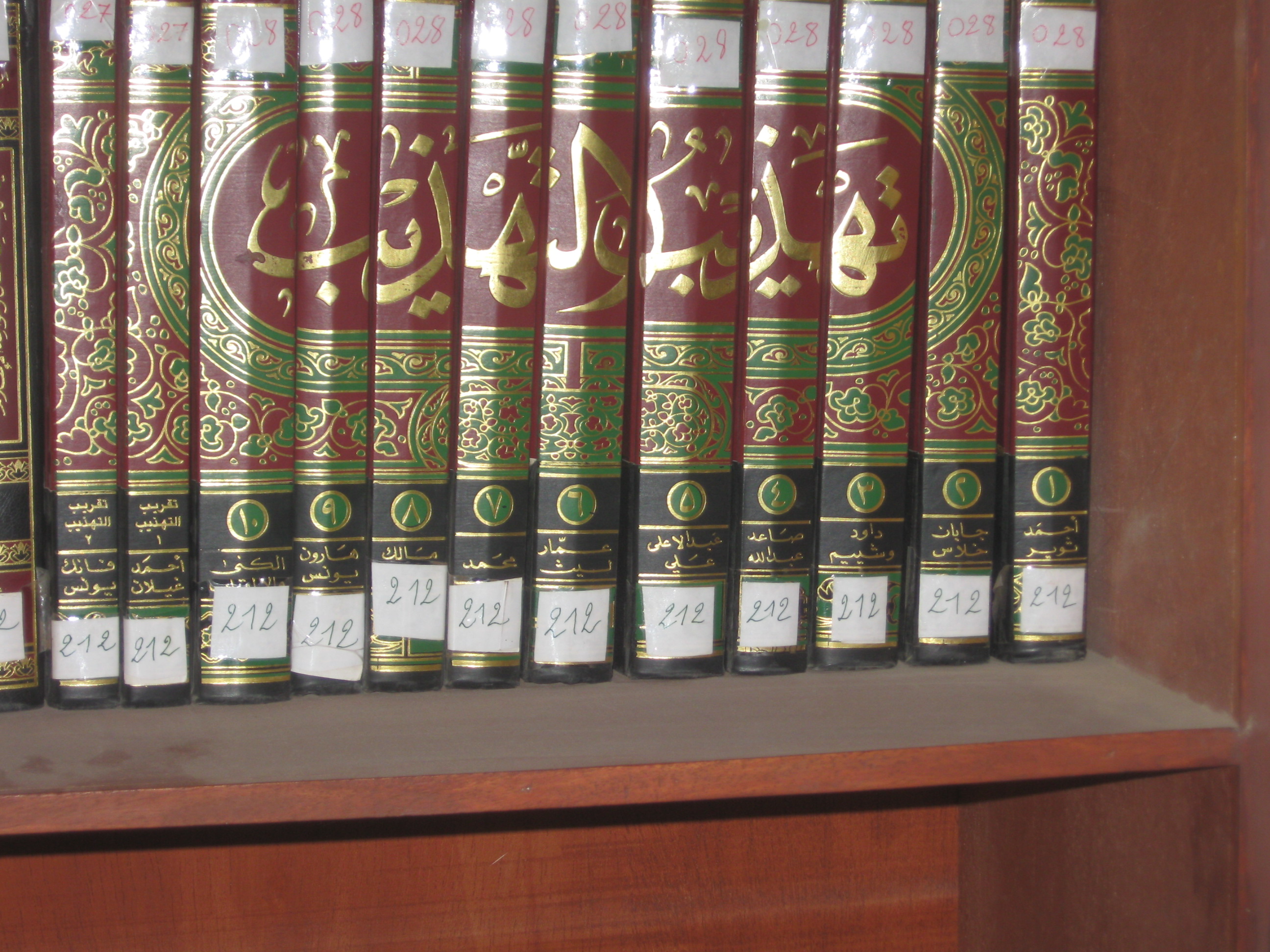 في حين يتفاوت توزيع الكتب على المكتبات من ناحية الكثافة –في العناوين على الأقل- تتقارب مواضيع الكتب؛ حيث نلاحظ وفرة في الكتب الاسلامية (القرآن وعلومه والتفسير والحديث