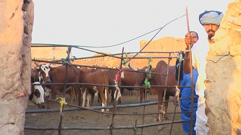 وعلى مقربة من سوق الإبل كان عميد باعة البقر السيد محمد الأمين ولد انينا يحكم إغلاق باب حائط يحوي عشرات الرؤوس التي يودعها لديه الباعة بعد عودتها من المراعي مساء، يرى أن البلدية تأخذ منهم ضرائب دون تقديم خدمات فهي تأخذ بشكل يومي 30 أوقية عن رأس البقر، و50 أوقية عن رأس الإبل وفي المسلخ تأخذ 500 أوقية عن النحيرة من الإبل و300 أوقية عن نحيرة البقر، و130 أوقية عن ذبيحة الغنم،" وفي المقابل لا توفر لنا شيئا فنحن نسقي من بئر قريبة من هنا، ونحفظ الابقار في هذا الحائط، لأنها تريد منا أن نذهب إلى سور بنته في مدخل المدينة الغربي وهو لا يناسب الباعة ولا المشترين..نحن نرفض ذلك