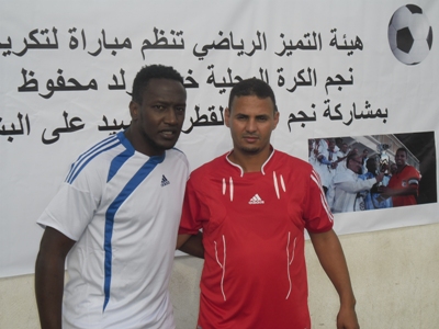 الأخبار(نواذيبو) - كرمت هيئة التميز الرياضي الشبابية لنجم المنتخب الوطني السابق محمد خونه ولد محفوظ استضافت فيها الهيئة النجم القطري السيد علي البشير لاعب نادي السلية القطري السابق مساء الجمعة 14 يونيو 2013 بمدينة نواذيبو.