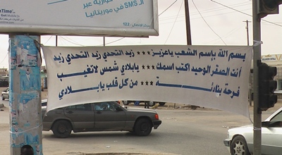 فيما يبدو أنه احتفاء من نوع خاص بالرئيس الجديد لموريتانيا علق مجهول لافتة على ملتقى الطرق المعروف بكرفور تنسويلم تشيد بالرئيس المنتخب وتحضه على مواصلة الطريق السياسي الذي اختاره لنفسه.
