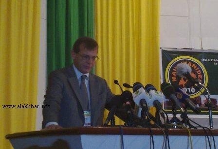 صفق الرئيس الموريتاني محمد ولد عبد العزيز اليوم الثلاثاء (9-11) ضمن لقاء دولي حول المعادن في موريتانيا لأحد المواطنين بعدما أوسعه مدحا وأثنى عليه وعلى فترة حكمه وعلى المشاريع الإنمائية التي يقوم بها.