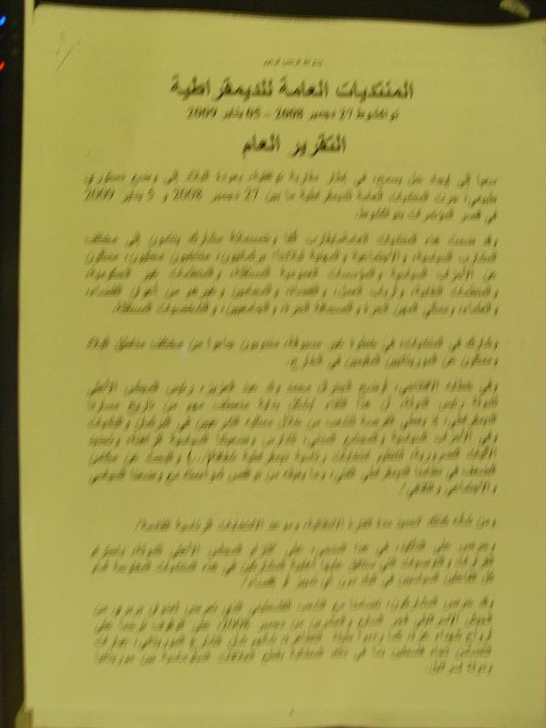 صدرت مساء أمس، في اليوم قبل الأخير من الأيام الوطنية للتشاور، وثيقة وقعت باسم لجنة التقرير العام ، وقد حصلت وكالة أنباء الأخبار المستقلة على نسخة من هذه الوثيقة ، وهذا نصها: