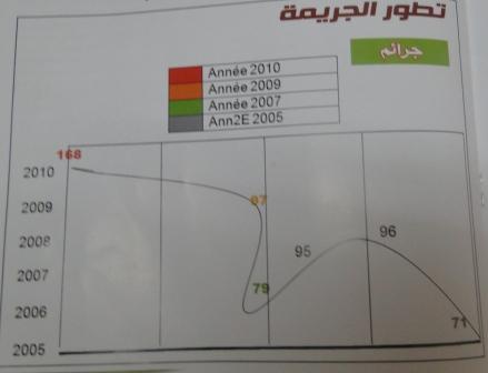 ومن الملاحظ أن النتائج التي تم الحصول عليها خلال عام 2010 ، تبزر ارتفاع عدد الجرائم مقارنة مع 2009 ( أكثر من 80% ) ولكن الدرك يواجهها بنجاح (انظر نسب التوضيح) وكذلك انخفاض ملحوظا في عدد النجاح .
