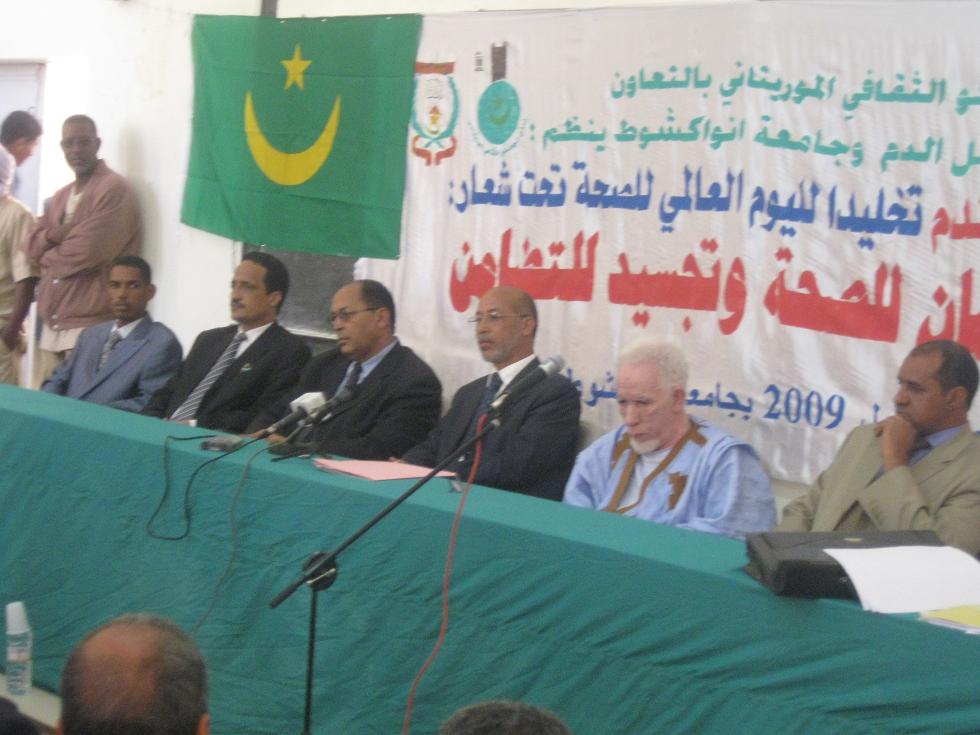 أشرف وزير الصحة الموريتاني صباح اليوم07/04/2009 على إفتتاح الأيام الجامعية للتبرع بالدم تحت شعار التبرع بالدم ضمان للصحة وتجسيد للتضامن .